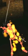 - ↑ A Scythe is the two-handed farm implement with a graceful S-curve to the handle, and a slightly more acute than perpendicular angle to the arced blade, with the cutting edge on the inside, and a perpendicular handle about halfway up. The game developers made the common error (so common there is a disambiguation message at the top of its Wikipedia page) of referring to a one-handed farm implement with a short straight handle and half-circular blade with the cutting edge on the inside, as a scythe instead of its proper name, Sickle. Both are considerably better suited to cutting grain stalks for harvesting than as weapons (cutting edge on the inside)