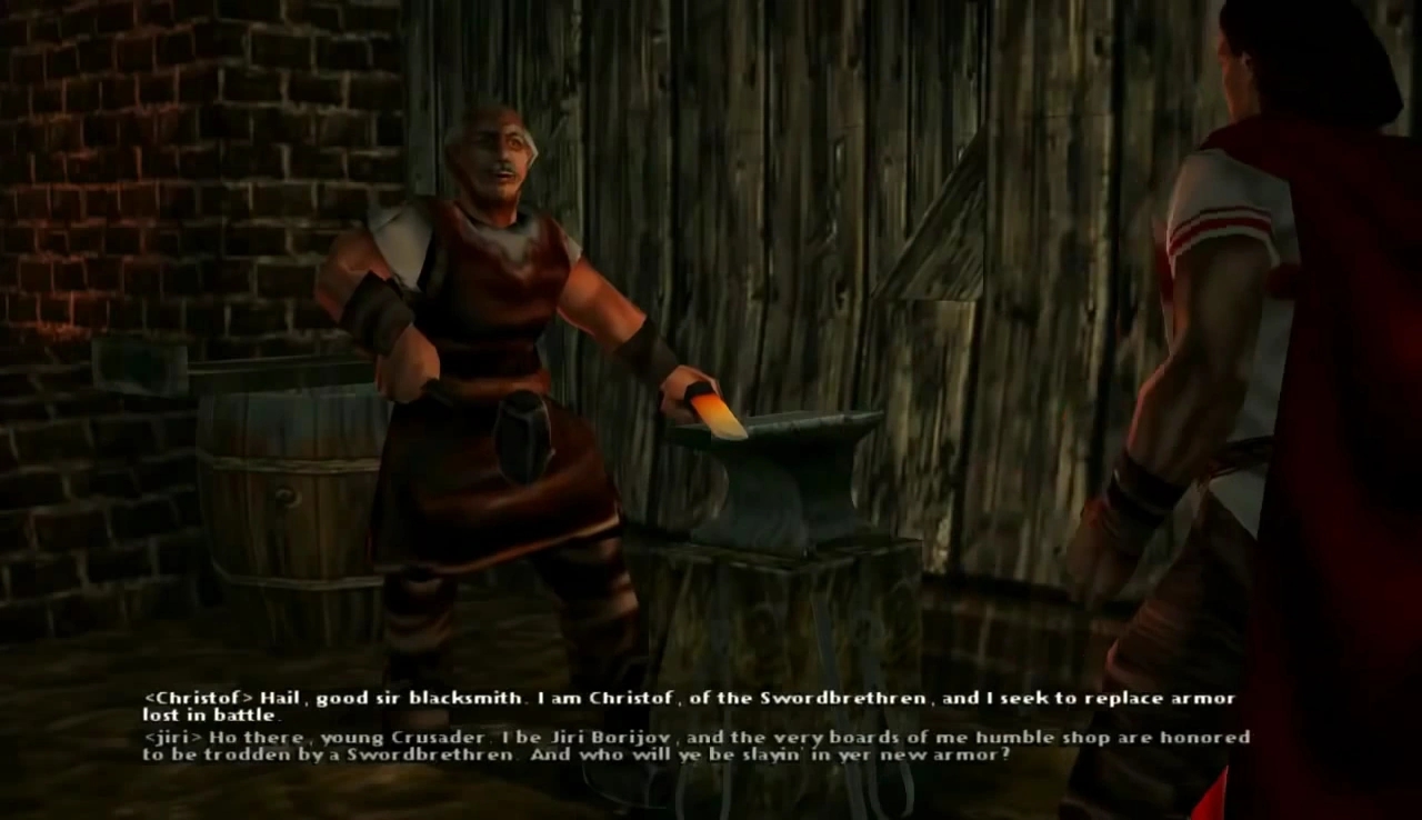- Knights of St. John. A pair at the gate to the Silver Mines have similar but different dialogue before and after encountering Ahzra in the Silver Mines, another in front of the Church only before. One is the same voice actor as a Tremere 2 and the Stranger. Another is the same voice actor as the Lasombra ghouls and Highwayman. A third, "Between wisdom and courage, 'tis better to be wise", is the same actor as Mendel and Mercurio. StJohn1, StJohn2, StJohn3, StJohn4